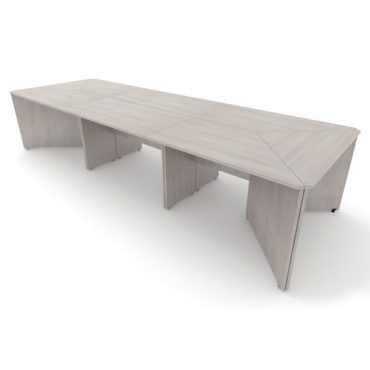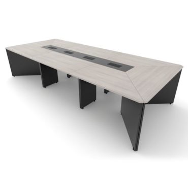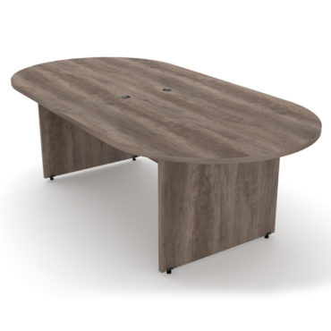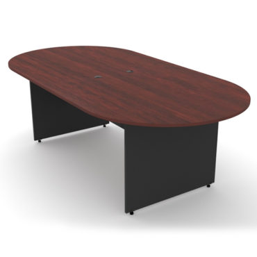 Cubierta ovalada y base en "H" fabricadas en melamina de 19 mm con acabado en los cantos