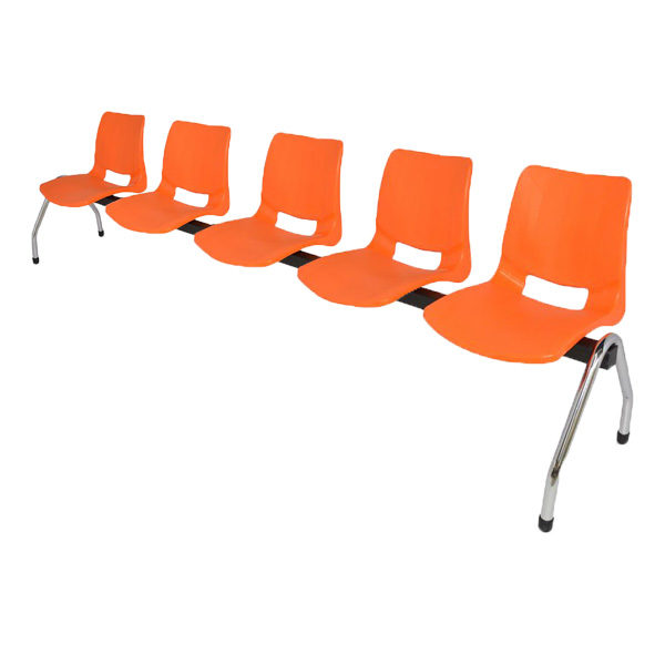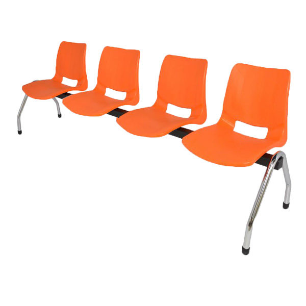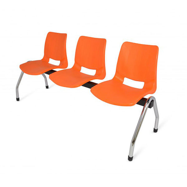 Estructura fabricada de tubular cuadrado de 2″ cal. 14, patas en tubo redondo de 1 1/4“cal. 16 con niveladores acabado en cromo. Asiento y respaldo integrados por una concha de polipropileno con transferencia térmica