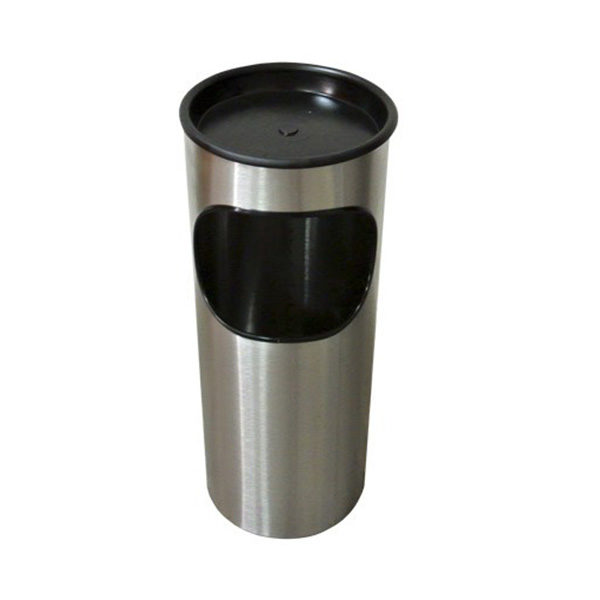 Bote fabricado en lámina de acero inoxidable cal. 22 con acabado pulido. Tapa plástica removible que se puede utilizar como cenicero. Capacidad de 30 litros.