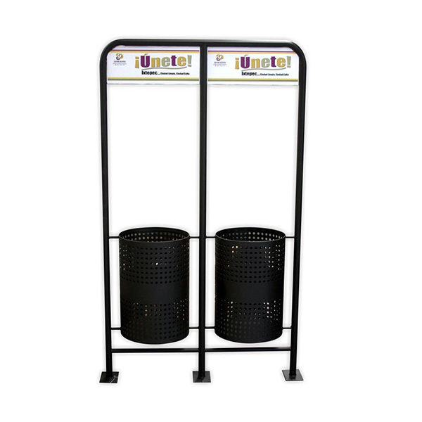 Bote fabricado en lámina de acero al carbón multi perforada cal. 18 y tubo de 1.5 pulgadas, acabado en pintura electrostática. Capacidad de 60 litros por bote. Anclaje: atornillar, anclar en cemento, movible. Color a elegir de nuestro catálogo.