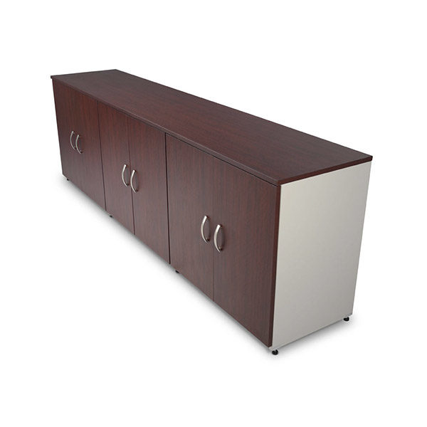 Credenza con 6 puertas, fabricada en melamina de 19 mm de espesor, cuenta con 3 entrepaños movibles, acabados en todos los cantos en PVC de 1 mm y niveladores.