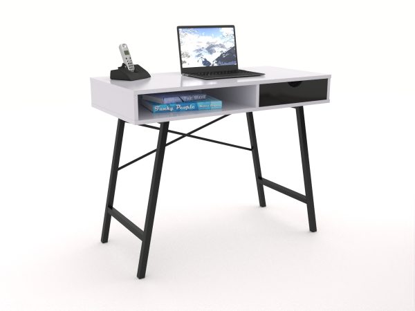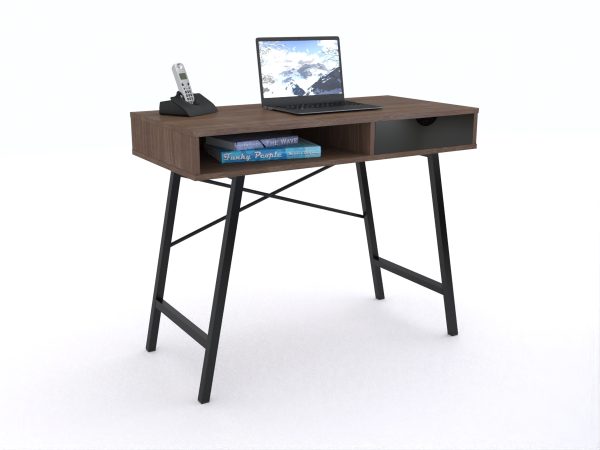 Estructura fabricada en tubular cuadrado de 1″ cal. 20 acabado en pintura negra. Cubierta de melamina de 19mm y cubrecantos de PVC de 1mm de espesor. Medidas de 100X48X75cm. Se entrega desarmado y en caja