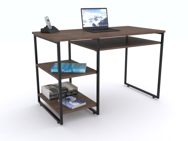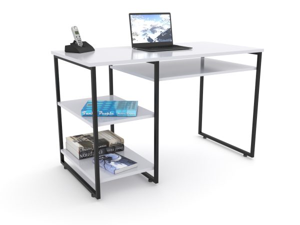 Estructura fabricada en tubular cuadrado de 3/4″ cal. 20 acabado en pintura negra. Cubierta de melamina de 19mm y cubrecantos de PVC de 1mm de espesor. Medidas de 120X60X75cm. Se entrega desarmado y en caja.