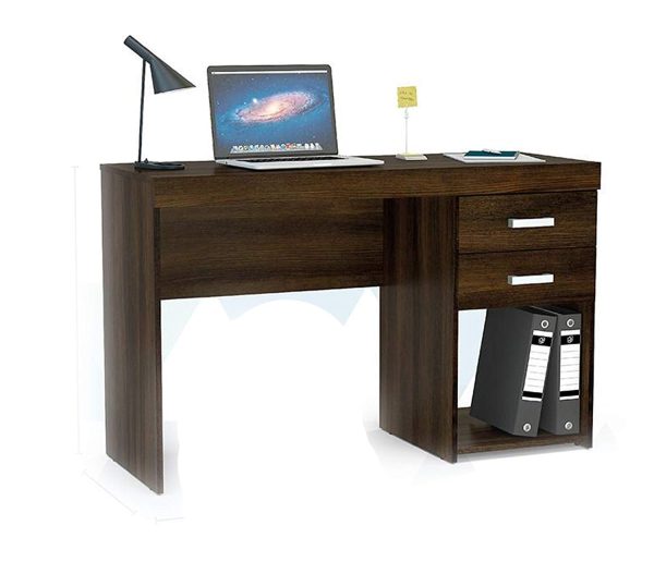Ideal para home office o áreas pequeñas de trabajo. Color: encino, roble, wengue. Medidas: frente 120cm x fondo 46cm, altura 75cm.