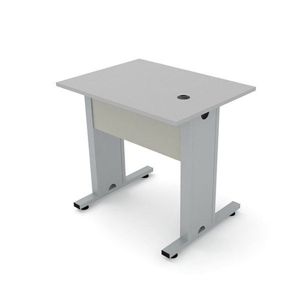 Escritorio recto en melamina 19 mm de espesor con acabado en los cantos en PVC de 1 mm. Base con sistema para ocultar el cableado, faldón melaminico, terminado en pintura electrostática color gris y niveladores. Color de melamina a elegir de nuestro catálogo.