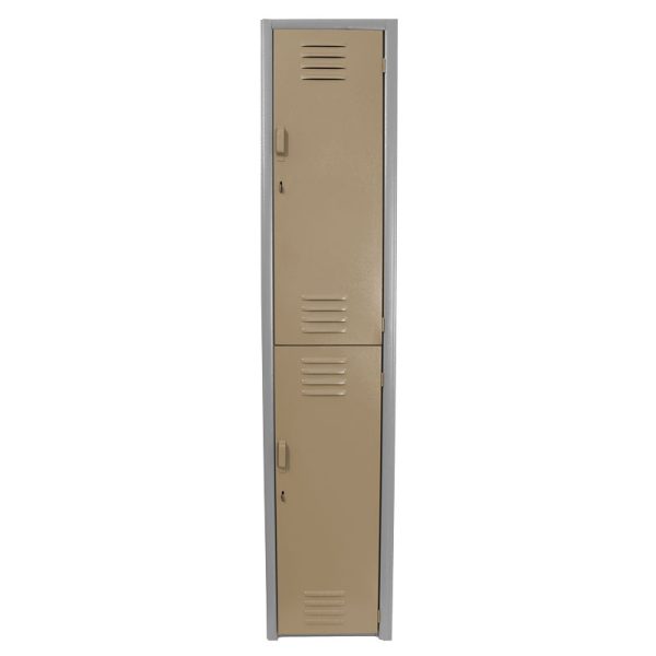 El cuerpo y las puertas son ensambladas mediante soldadura por resistencia. Las puertas se abren y cierran por medio de 2 bisagras tipo libro. Cada puerta cuenta con 2 rejillas de ventilación, estiradera y portacandado. Color gris o arena.