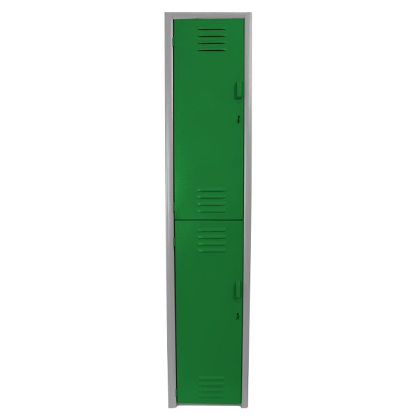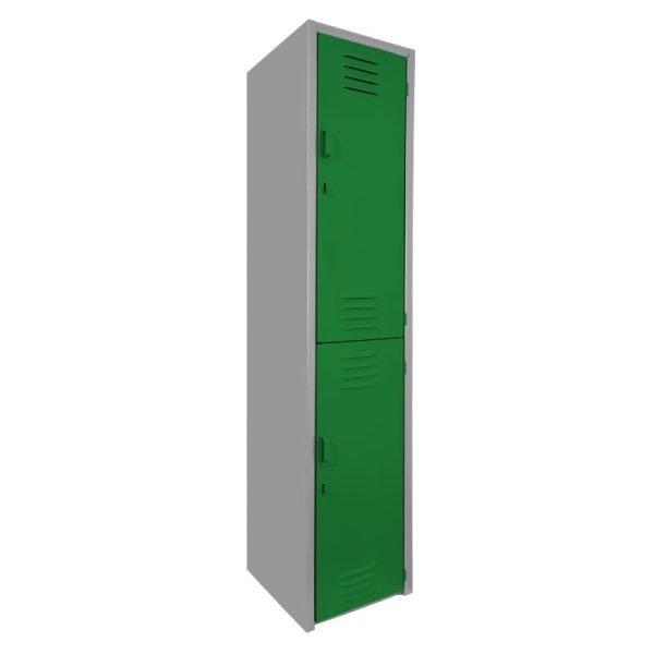 El cuerpo y las puertas son ensambladas mediante soldadura por resistencia. Las puertas se abren y cierran por medio de 2 bisagras tipo libro. Cada puerta cuenta con 2 rejillas de ventilación, estiradera y portacandado. Color gris o arena