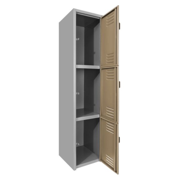 El cuerpo y las puertas son ensambladas mediante soldadura por resistencia. Las puertas se abren y cierran por medio de 2 bisagras tipo libro. Cada puerta cuenta con 2 rejillas de ventilación, estiradera y portacandado. Color gris o arena.