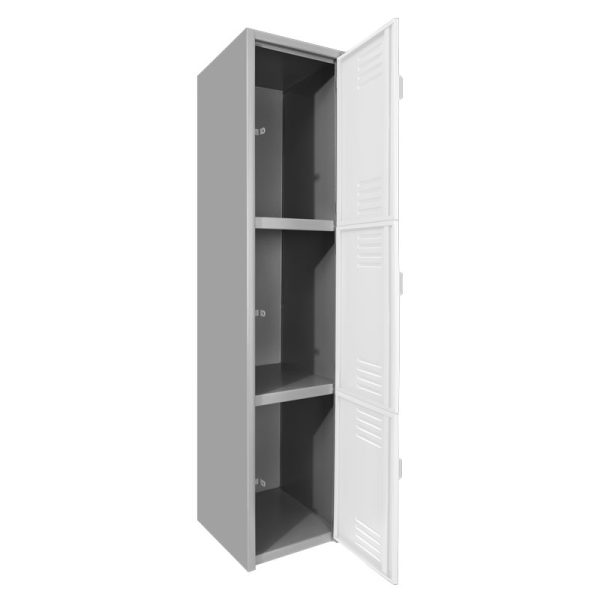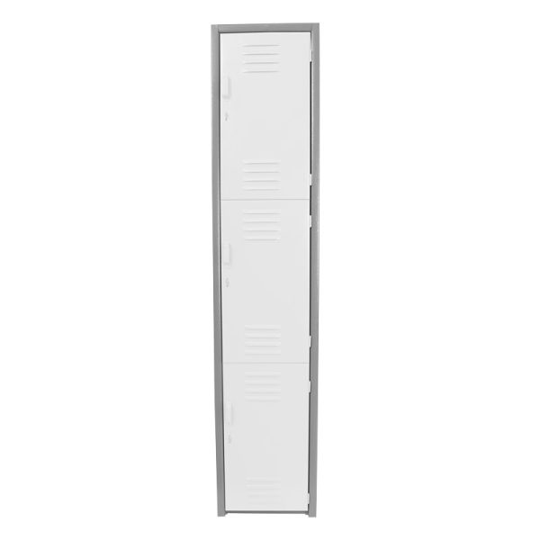 El cuerpo y las puertas son ensambladas mediante soldadura por resistencia. Las puertas se abren y cierran por medio de 2 bisagras tipo libro. Cada puerta cuenta con 2 rejillas de ventilación, estiradera y portacandado. Color gris o arena.