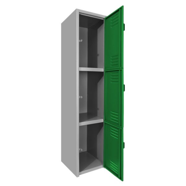 El cuerpo y las puertas son ensambladas mediante soldadura por resistencia. Las puertas se abren y cierran por medio de 2 bisagras tipo libro. Cada puerta cuenta con 2 rejillas de ventilación, estiradera y portacandado. Color gris o arena.