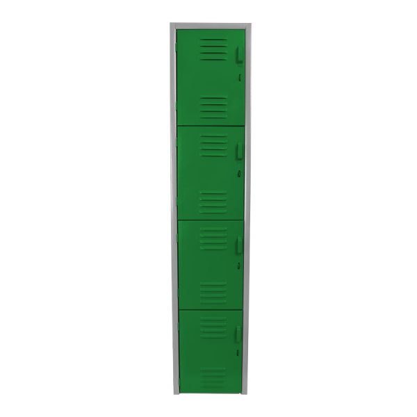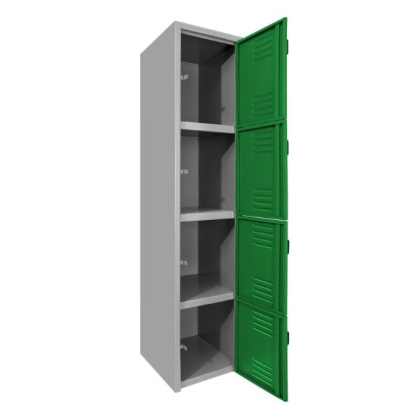El cuerpo y las puertas son ensambladas mediante soldadura por resistencia. Las puertas se abren y cierran por medio de 2 bisagras tipo libro. Cada puerta cuenta con 2 rejillas de ventilación, estiradera y portacandado. Color gris o arena.