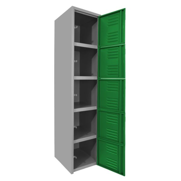 El cuerpo y las puertas son ensambladas mediante soldadura por resistencia. Las puertas se abren y cierran por medio de 2 bisagras tipo libro. Cada puerta cuenta con 2 rejillas de ventilación, estiradera y portacandado. Color gris o arena.