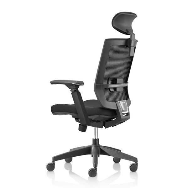 Brazos con ajuste de altura y codera en poliuretano suave deslizantes. Base pentagonal y rodajas de nylon de 60 mm. Mecanismo ejecutivo con palanca para ajuste de altura, palanca para no permitir el reclinamiento y perilla tensora. Pistón de rodilla rebasador de base. Color negro.