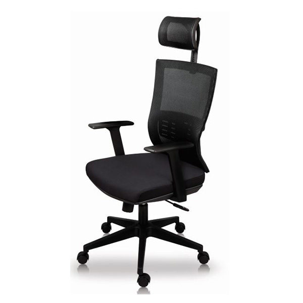 Respaldo estructura de polipropileno con fibra de vidrio, tapizado en malla y con soporte lumbar de polipropileno ajustable en altura. Asiento con espuma estándar espesor de 7.5 cm x 35 kg/m3 de densidad, tapizado en tela. Brazos fijos de polipropileno en forma de T, sujetos al asiento.