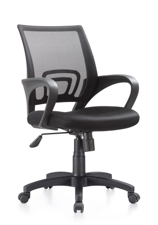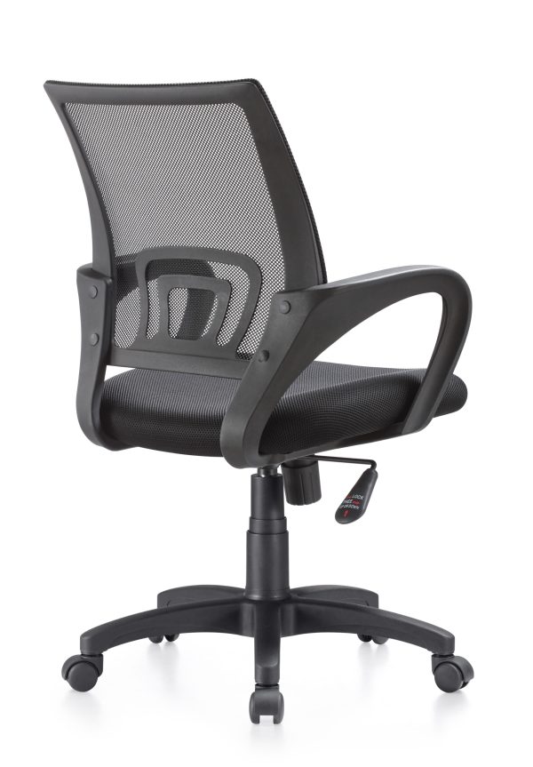 Respaldo fabricado en polipropileno, tapizado en malla con soporte lumbar fijo; Asiento con espuma espesor de 6cm x 35kg/m3 de densidad, madera del asiento 12mm de espesor, tapizado en tela mesh. Brazos fijos de polipropileno diseño ergonómico tipo cascada, sujetos a respaldo y asiento. base de nylon de 24″ con rodajas de nylon de 50mm. Mecanismo palanca para activar pistón y bloqueo de reclinamiento. Perilla de asiento tensora de reclinamiento. color negro.