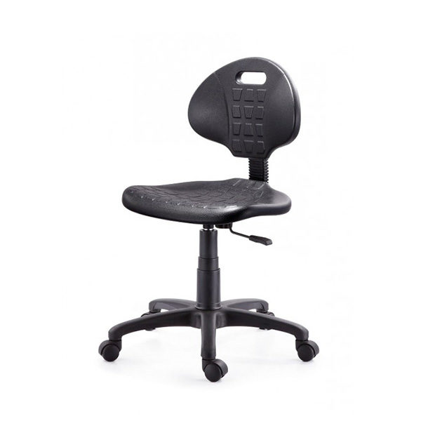 Acojinado con poliuretano compacto suave de uso industrial con interior en madera de triplay, mecanismo fijo con palanca para activación de pistón, base de nylon pentagonal de 24" con rodajas en nylon de 50mm